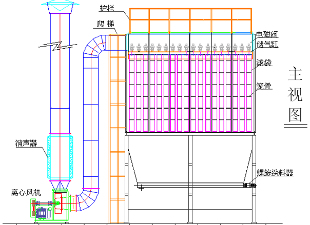 正常工作时,含尘气体由进风口进入灰斗,由于气体体积的急速膨胀,一部分较粗的尘粒受惯性或自然沉降等原因落入灰斗,其余大部分尘粒随气流上升进入袋室,经滤袋或滤筒过滤后,尘粒被滞留在滤袋或滤筒的外侧,净化后的气体由滤袋或滤筒内部进入上箱体,再由阀板孔、排风口排入大气,从而达到除尘的目的。含尘气体通过滤袋的净化过程,随着时间的增加而积附在滤袋或滤筒上的粉尘越来越多,增加了滤袋的阻力,致使通过滤袋或滤筒气体量逐渐减少。为使阻力控制在限定范围内,保证所需气体量通过由控制仪发出指令,按顺序触发各种控制阀开启脉冲阀,气包内的压缩空气瞬时地经脉冲阀至喷出管的各孔喷出,再经文氏管喷射到各对应的滤袋或滤筒内。滤袋或滤筒在气流瞬间反向作用下急剧膨胀,使积附在滤袋或滤筒表面的粉尘脱落,滤袋或滤筒得到再生。被清掉的粉尘落入灰斗,经排灰阀排出机体。积附在滤袋或滤筒上的粉尘被有周期性地脉冲喷吹清除,使净化的气体正常通过,保证除尘系统运行。